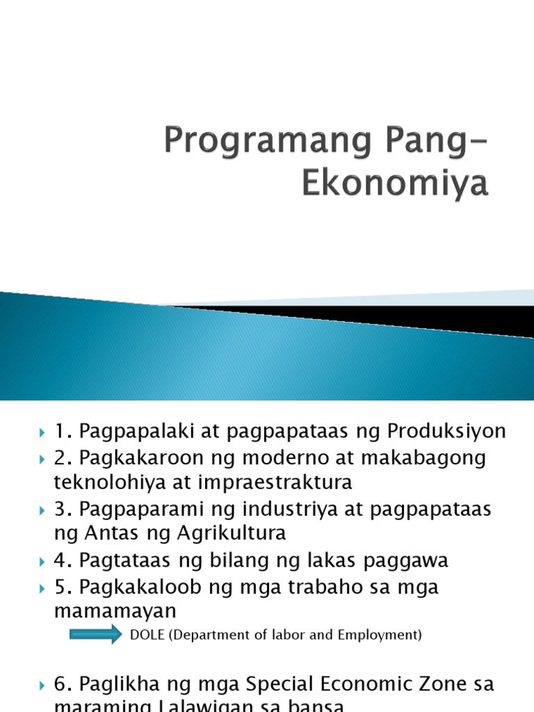 May iilang mahahalagang programang pang-imprastraktura na kasalukuyang pinauunlad ng pamahalaan tulad ng pagsasaayos ng mga kalsada pagpapalit ng. With Super get unlimited access to this resource and over 100000 other Super resources. Programang Pang-Ekonomiya PDF.