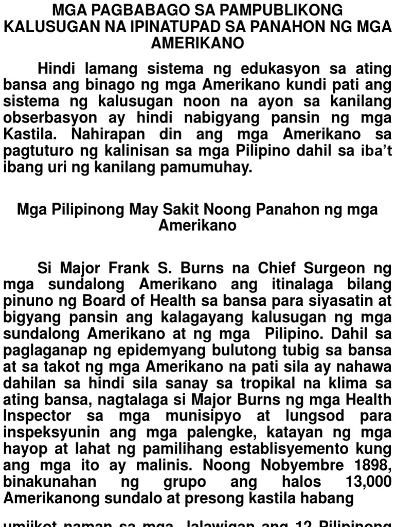 Mga Pagbabago Sa Pampublikong Kalusugan Na Ipinatupad Sa Panahon Ng Mga Amerikano Pdf
