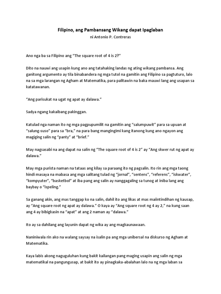 Filipino Ang Pambansang Wikang Dapat Ipaglaban Pdf