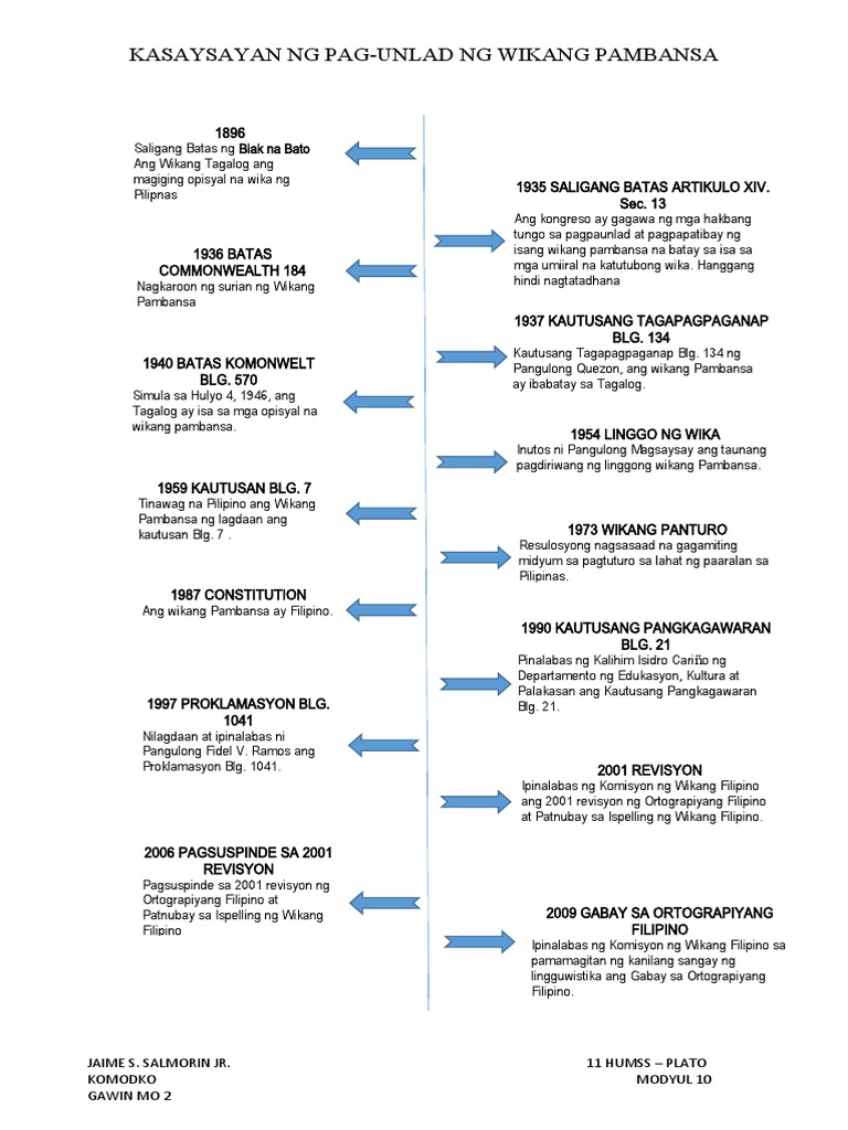 Kautusang Tagapagpaganap blg 134 Manuel L Quezon Wikang Pambansa ay ibabatay sa Tagalog. Kautusang Pangkagawaran blg 25 Juan Manuel ng kagawarang edu at kultura Pagpapatupad ng edukasyong bilingual sa lahat ng kolehiyo at pamantasan. 2013 - Binagong Gabay sa Wikang Filipino na tinawag na.