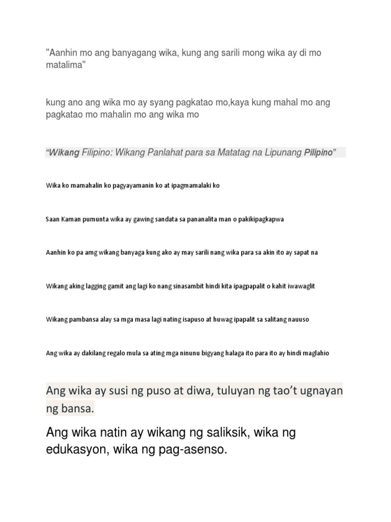 Wikang atin Wika ng Saliksik. Tulad ng ating Wikang Filipino. Ala ala selfassessments mahalin ang pamilya.